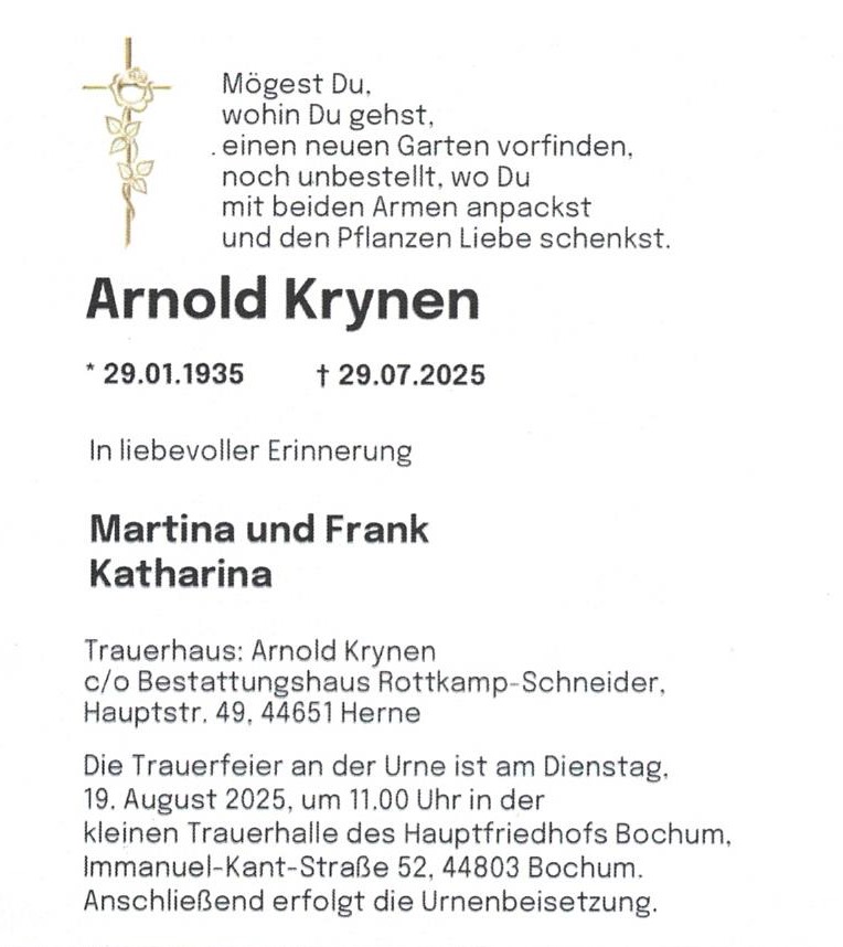 • Trauerfeier und Beisetzung Wolfgang Westerheide
